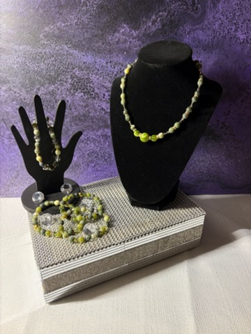 Natural Stone Beads, Elastic, Stackable. A natural green stone bracelet set with elastic stackable design.